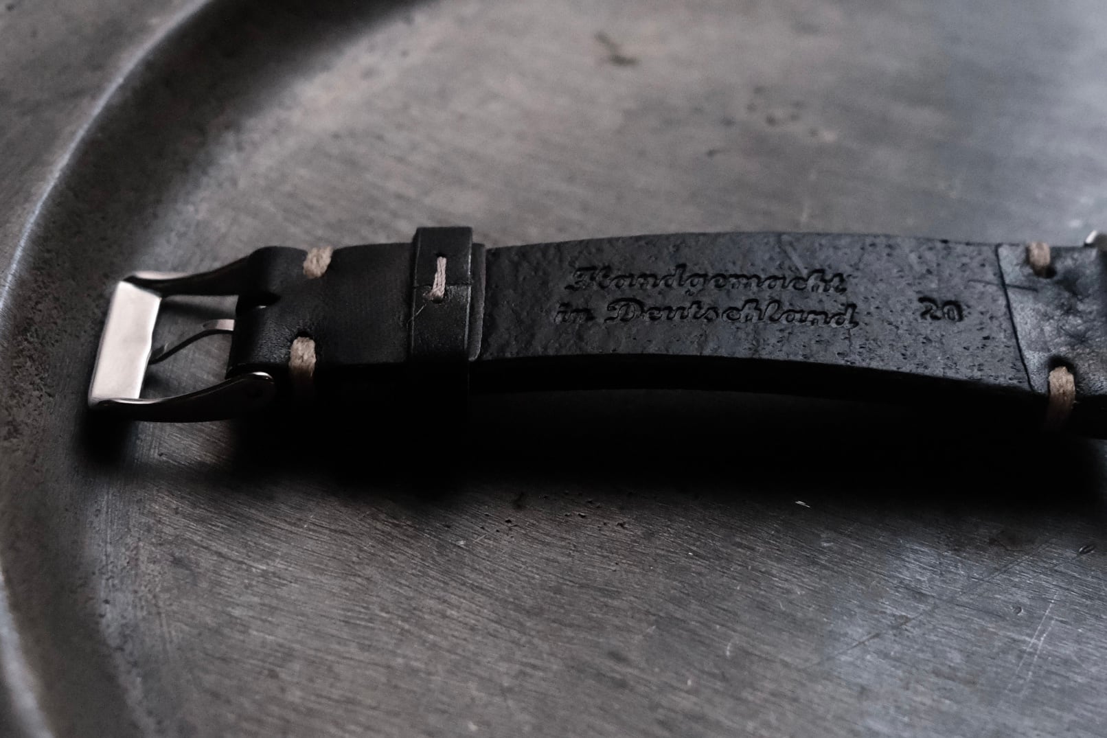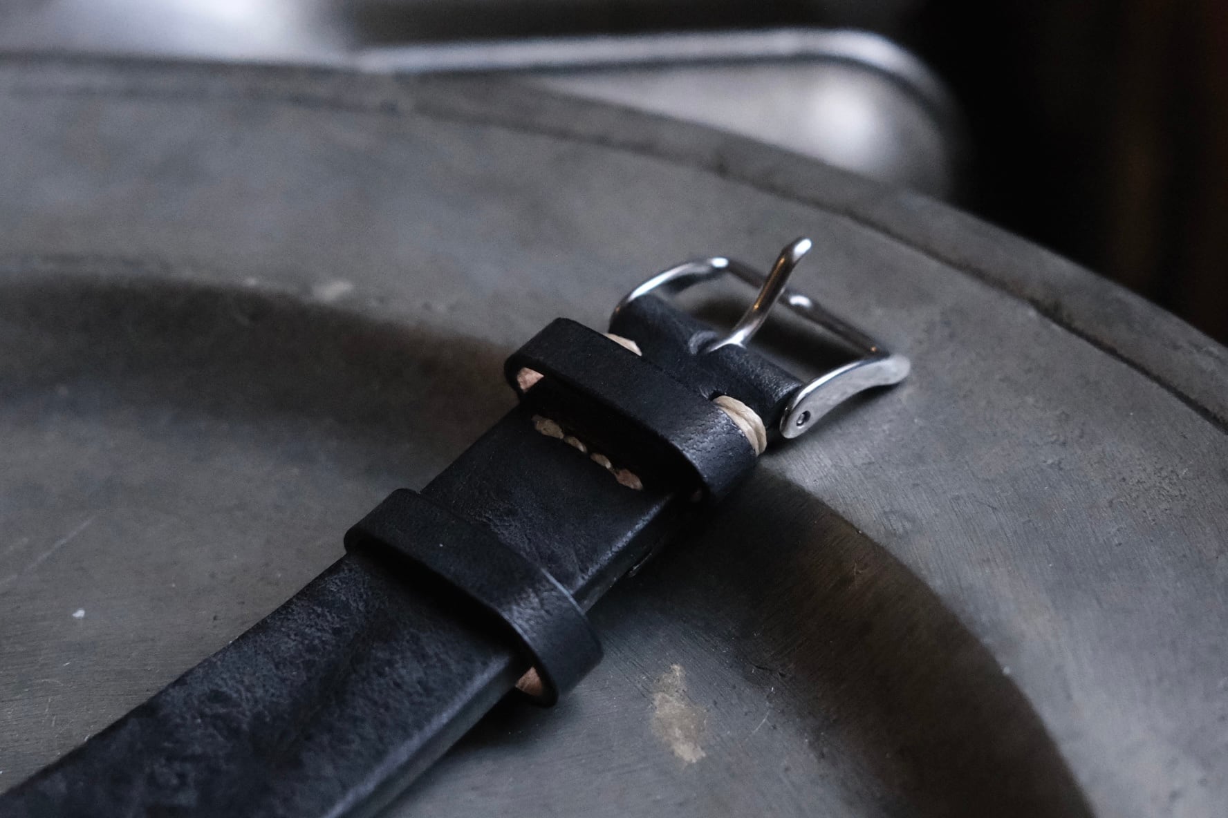 分厚い革とハンドステッチが